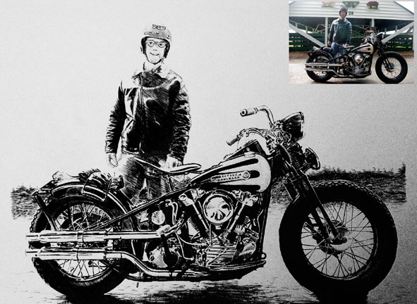 Portrait of California guy with his Harley Davidson Knucklehead