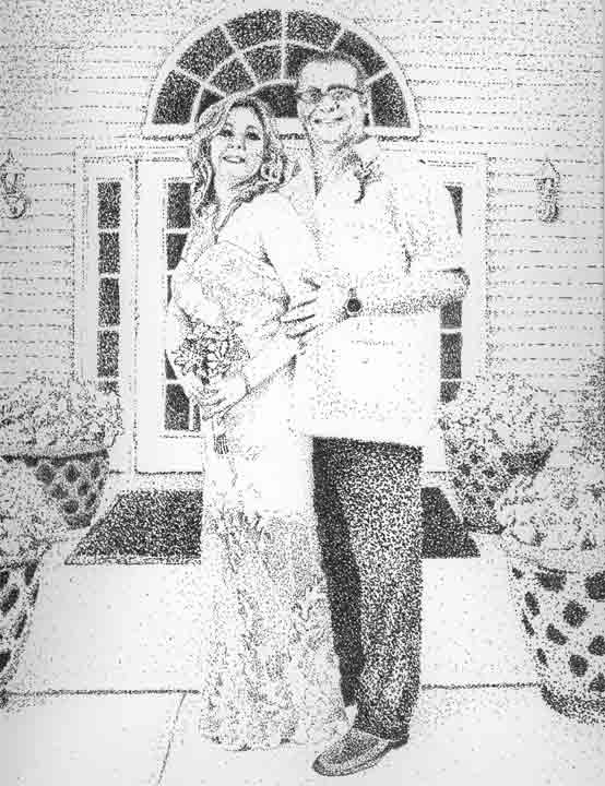 Fine line drawing from a photo using ball point pen. Varying the weight and length of the lines as well as the direction creates the textures and differentiates the darks from the lights. For portraits and any detailed drawings containing a fair amount of shading I like to use ball point pens for their versatility as compared to technical drawing pens (koh-i-noor rapidograph) that have one line weight, I find they are more suited to stippling or doing technical drawings which they were made for, although I have done many pieces using them, some of which are represented in this section of my web site. You will notice the difference by their almost clinical look, shading is done by either using different sized pens or by building up the thickness of each line or by stippling as mentioned before, which is a drawing comprised entirely of dots, the closer the dots the darker the area thereby creating shadows.